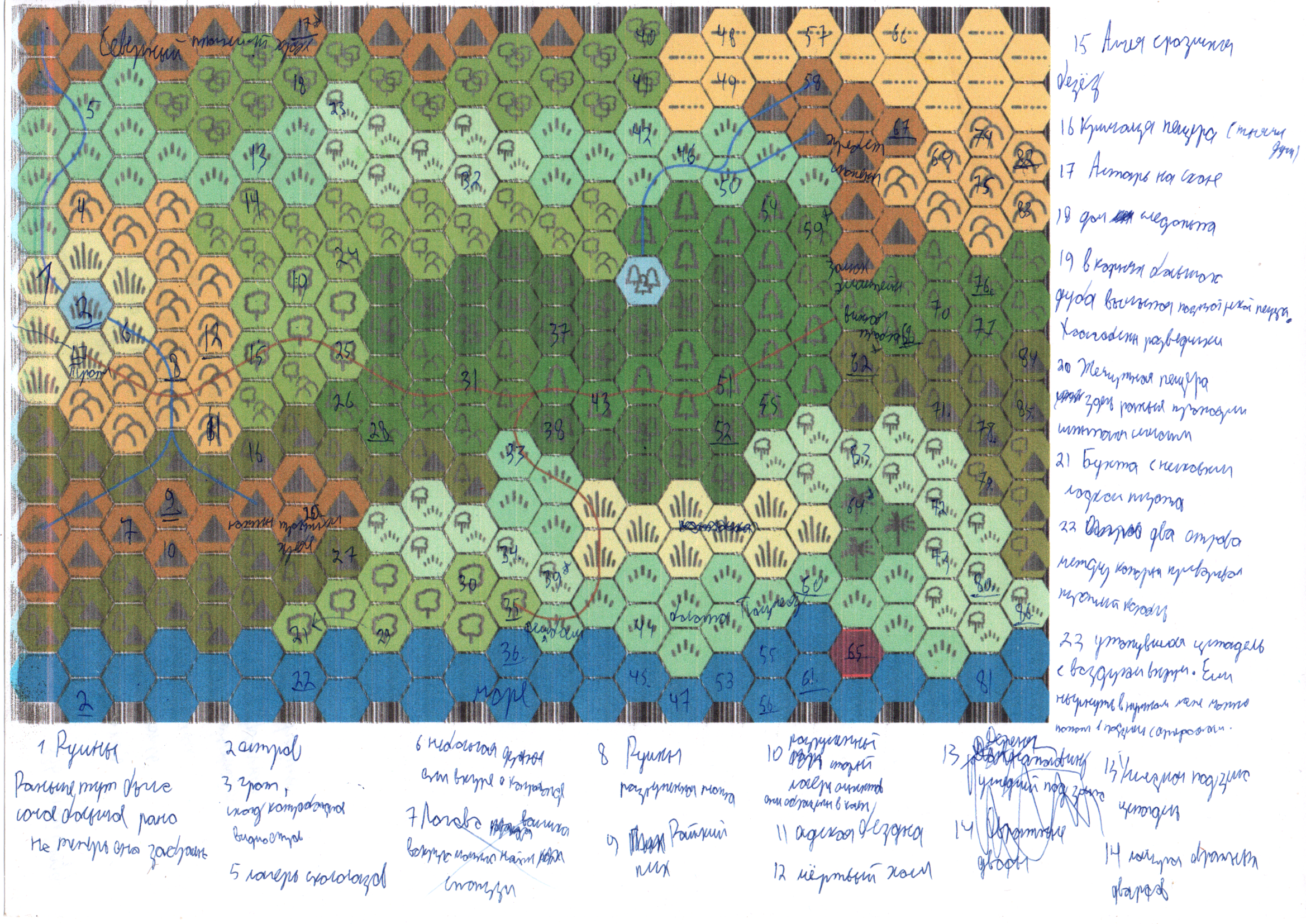 Игра 22 (4 Жнивотлена - 6 Жнивотлена) На утро следующего Аманиэль и Арвен подарили отряду эльфийскую рапиру и волшебный амулет. Поле этого герои забрались на спину Патрина и пролетели несколько десятков миль на Север до своей телеги, где их, оперев рога на ели, ждал гигантский лось. Патрин попрощался и отправился обратно в рощу, а лось предложил свою помощь в благодарность за спасение лосёнка (благодаря амулету, Шиверс теперь может накладывать заклинания общения с животными). Гигантский лось с лёгкостью тащил телегу по лесной дороге, когда навстречу отряду выехала повозка с клеткой. Люди в чёрных доспехах при виде лося бросились в рассыпную оставив пленника одного, позже выяснилось, что человек в клетке это Угвар. Дальше герои повстречали членов культа дракона, которые узнав, что с ними говорил Патрин, отдали отряду всю свою провизию. К концу дня герои добрались до области, где, по их предположению, должна была находиться крепость дварфов. Там они повстречали стражников, ищущих контрабандистов, и овражных дварфов, которые согласились провести их цитадели взамен на блестяшки. Путь до цитадели пролегал через деревню овражных дварфов, пока герои проезжали мимо, мелкие существа окружили повозку и показывали пальцами на большого лося. Из рядов дварфов выбился один человек и запрыгнул в телегу, это был контрабандист, который заблудился и третий день уже не мог покинуть эту деревню из-за гостеприимства дварфов. Входом в цитадель была странная полянка с растущим посередине неё подозрительным растением. Оставив Юрди и лося наверху, герои обвязались верёвкой и пошли дёргать растение. Земля под ним стала мягкой и затянула их вниз, где и воздушным потоком их чуть на затянуло в себя какое-то хищное растение.